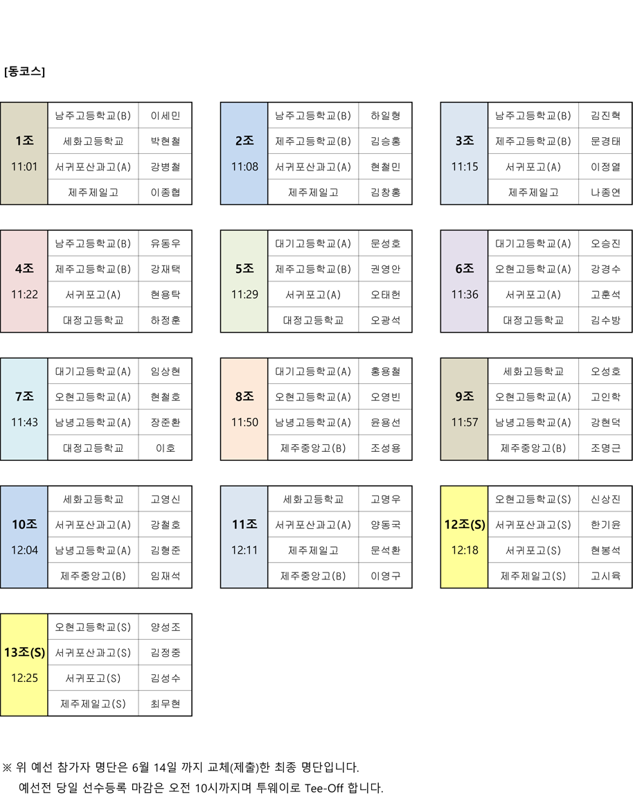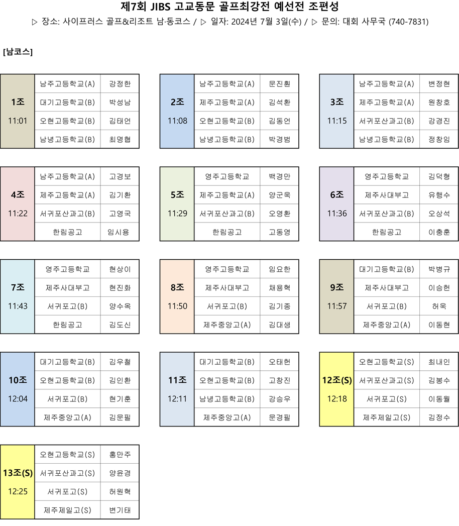 제7회 JIBS 고교동문 골프최강전 예선전 조편성